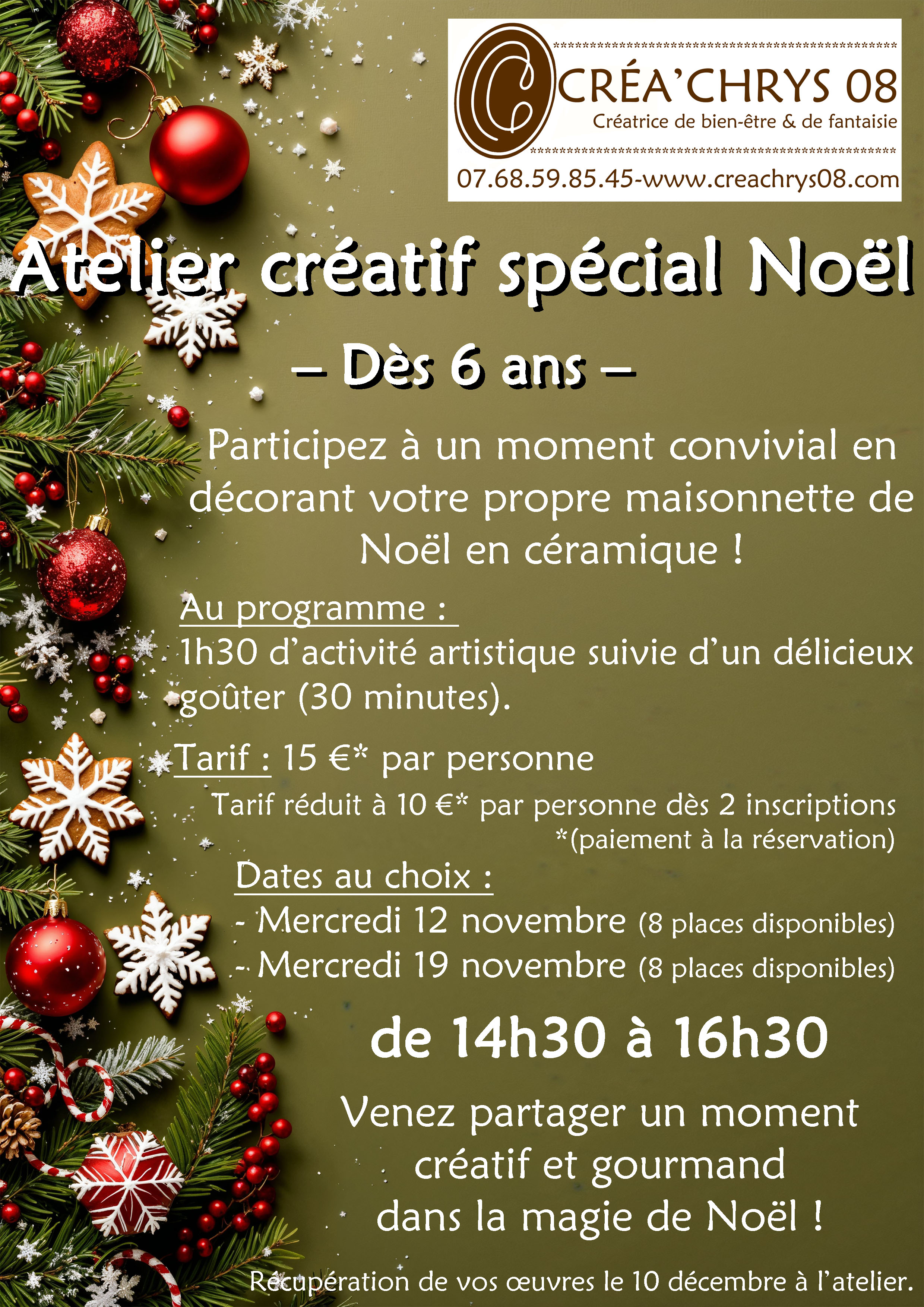 Venez partager un moment créatif et gourmand dans la magie de Noël !